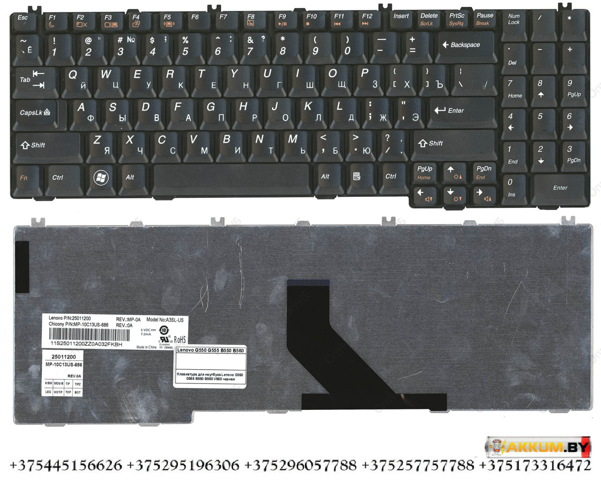 Все клавиатуры для ноутбуков в нашем магазине соответствуют международными стандартам качества: они из улучшенного материала, обеспечивающего комфорт при работе на ноутбуке. Клавиатура для ноутбука Lenovo IdeaPad G550, G555, B550, B560, V560 русифицирована.