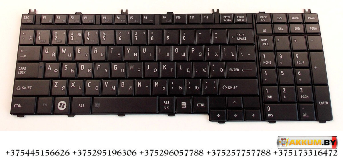 Клавиатура для ноутбука Toshiba Satellite A500, L350, L500, L505, F501, P200, P300, P500 вышла из строя! Поломались клавиши? Или залили клавиатуру водой? Согласитесь, использовать мышку и экранную клавиатуру вместо стандартной клавиатуры неудобно. Для 100% использование ноутбука вам достаточно купить клавиатура для ноутбука Toshiba Satellite A500, L350, L500, L505, F501, P200, P300, P500 у нас в интернет магазине. Заменить старую клавиатуру на новую вы можете самостоятельно или с помощью специалиста в нашем офисе. Вы также можете заказать клавиатуру или получить более подробную консультацию по телефону.