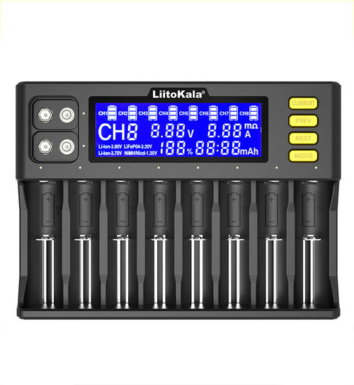М зарядное устройство LiitoKala Lii-S8 рассчитано на осуществление заряда литий-ионных, никель-кадмиевых и никель-металлгидридных аккумуляторов. В зарядном устройстве LiitoKala Lii-S8 можно производить заряд аккумуляторов Ni-Cd, Ni-MH и Li-Ion формата: AA, AAA, C, 26650, 22650, 20700, 18650, 17670, 18500, 18350, 17500, 17335, 14500, 16340, 10440 и др. как незащищенных, так и с платой защиты.