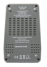 Входное напряжение: 100~240В~, 50/60Hz Выходное напряжение: 12В, 1А Диапазон токов заряда: 200 ~ 1000 mA Диапазон токов разряда: 100 ~ 500 mA Макс. заряжаемая ёмкость: 20 000 mAh Совместимость по химическому составу: Ni-Cd, Ni-MH Совместимость по типоразмеру: AA (LR6), AAA (LR3) Рабочая температура от 0 до 40?С
