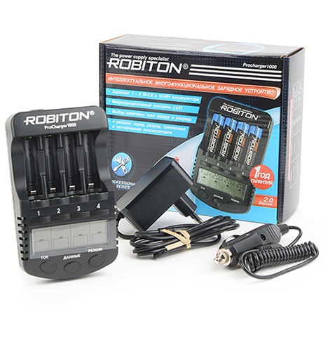 ROBITON ProCharger1000 – интеллектуальное многофункциональное зарядное устройство, которое позволяет быстро и бережно заряжать Ni-Cd и Ni-MH аккумуляторы размера AA/HR6 и AAA/HR03. Данная модель имеет 4 режима работы: заряд, разряд, тестирование и тренировка аккумуляторов, и позволяет выбирать режим работы и величину тока заряда (200, 500, 700 или 1000мА) и тока разряда (100, 250, 350 или 500мА) для каждого заряжаемого аккумулятора.