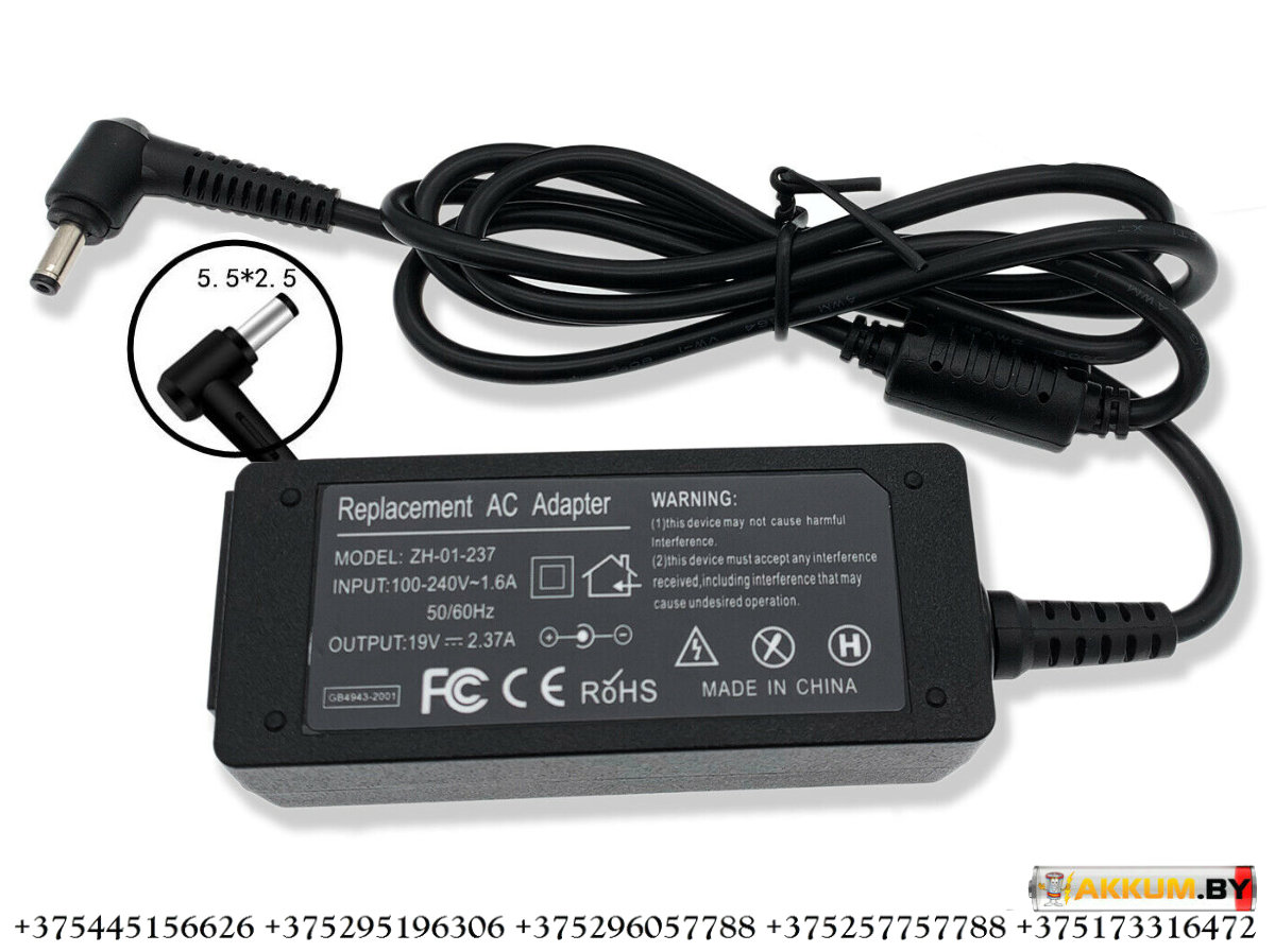 Зарядное устройство для ноутбука ASUS 19V 2.37A (5.5x2.5), используется для зарядки аккумуляторной батареи планшета, ноутбука от сети 220в.