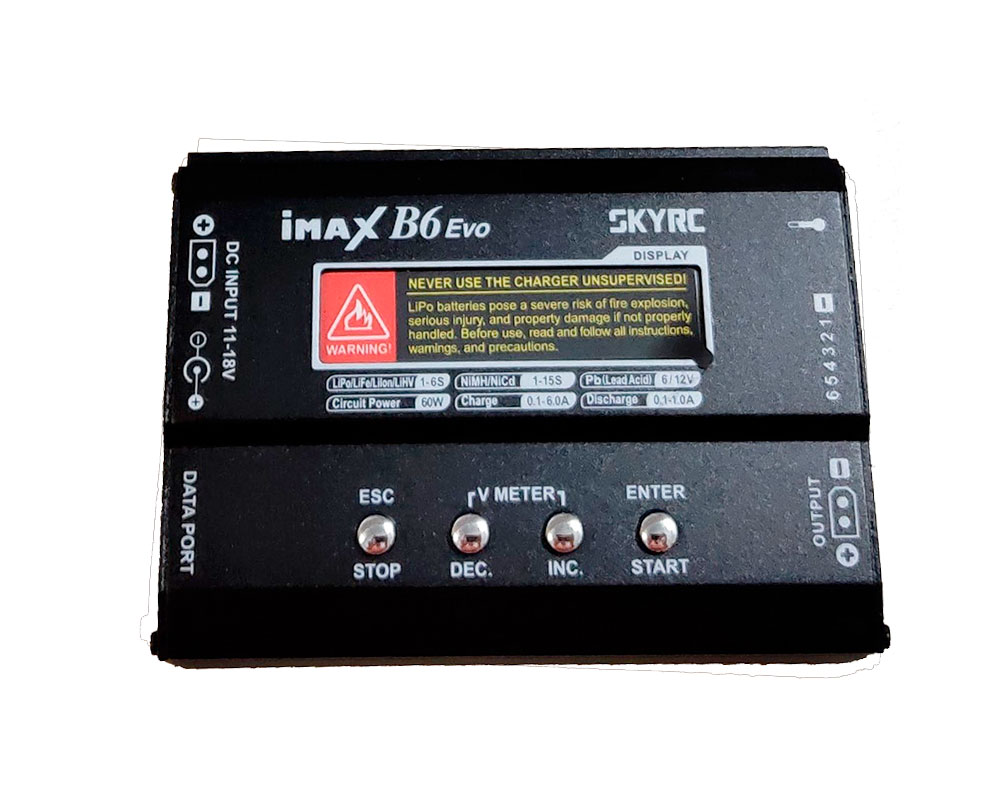Характеристики и описание Устройство B6 EVO Charger имеет автоматическую функцию, которая определяет питающий ток во время процесса зарядки или разрядки. В частности, для литиевых батарей она способна предотвратить перегрузку, которая может привести к взрыву по вине пользователя. Функция может автоматический разъединить в цепи и может дать сигнал, обнаружив какой-либо сбой. Все программы данного устройства были отрегулированы при помощи двухстороннего соединения и коммуникации с целью достижения максимальной безопасности и минимизации неполадок. Все настройки могут быть видоизменены пользователями. Для восстановления батареи и балансирования с целью поддержания функциональности батареи имеются от 1 до 5 циклических и продолжительных процессов зарядки-разрядки.