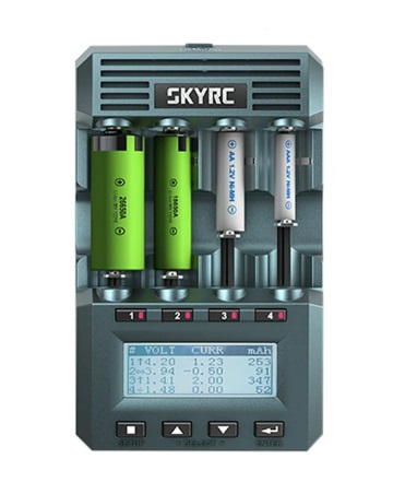 Зарядное устройство SkyRC MC3000 - Универсальное зарядное устройство Совместимость с литий-ионными, Eneloop, Ni-MH, Ni-Cd, Ni-Zn, LiFePO4, Lilo4.35 аккумуляторами. Дисплей MC3000 не только отображает реальное напряжение заряда/разряда, ток, емкость, но и может помочь вам обновить анализ, подсчет циклов батарей, проверку тока, перезапуск напряжения, ремонт (обрыв) батарей и т. д.