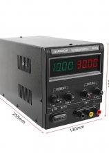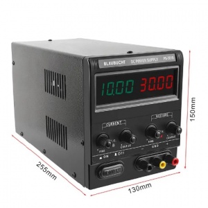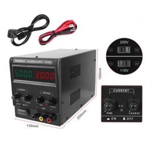 Импульсный лабораторный блок питания PS-305 0-30V/0-5A 150W применяется при ремонте мобильных телефонов, компьютерной техники, для зарядки аккумуляторов, при производстве и ремонте печатных плат, электродвигателей, светодиодной продукции. Незаменимая вещь в Вашей мастерской или лаборатории. За счёт продуманной системы защиты, которая включает защиту от перегрузки по току, защиту от перегрева и защиту от перегрузки, может использоваться во многих областях. Блок питания имеет интуитивно понятный светодиодный цифровой дисплей, отображающий показатели напряжения и силы тока. В комплекте блок питания Wanptek PS-305, инструкция, сетевой кабель с Европейской вилкой и провода с зажимами типа "крокодил".