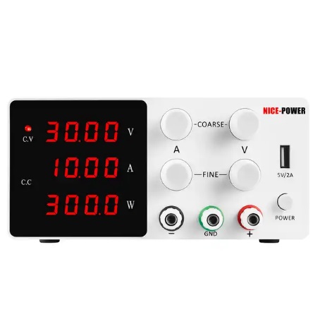 Импульсный лабораторный блок питания Nice-Power SPS-W3010 0-30V/0-10A 300W применяется при ремонте мобильных телефонов, компьютерной техники, для зарядки аккумуляторов, при производстве и ремонте печатных плат, электродвигателей, светодиодной продукции. Незаменимая вещь в Вашей мастерской или лаборатории. За счёт продуманной системы защиты, которая включает защиту от перегрузки по току, защиту от перегрева и защиту от перегрузки, может использоваться во многих областях. Блок питания имеет интуитивно понятный светодиодный цифровой дисплей, отображающий показатели напряжения и силы тока. В комплекте блок питания Nice-Power SPS-W3010, инструкция, сетевой кабель с Европейской вилкой и провода с зажимами типа "крокодил".
