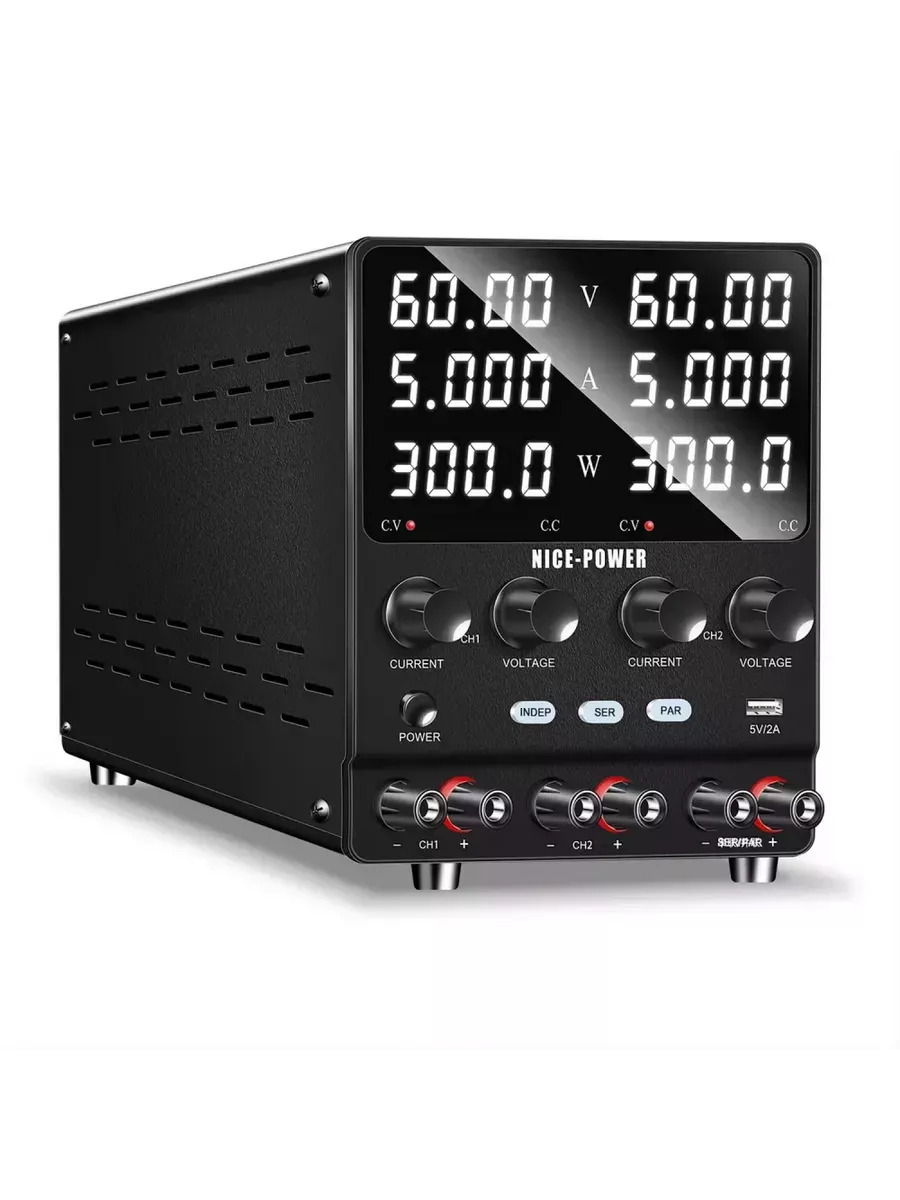 Импульсный лабораторный блок питания Nice-Power SPS605-2KD 0-60V/0-5A применяется при ремонте мобильных телефонов, компьютерной техники, для зарядки аккумуляторов, при производстве и ремонте печатных плат, электродвигателей, светодиодной продукции. Серия импульсных источников питания для измерительного прибора исключила неудобство большого объема и тяжелого веса традиционного источника питания.Выходное напряжение и ток контролируются двумя переменными резисторами с грубой и тонкой регулировкой для более удобной и точной регулировки. Незаменимая вещь в Вашей мастерской или лаборатории. За счёт продуманной системы защиты, которая включает защиту от перегрузки по току, защиту от перегрева и защиту от перегрузки, может использоваться во многих областях. Блок питания имеет интуитивно понятный светодиодный цифровой дисплей, отображающий показатели напряжения и силы тока. В комплекте блок питания Nice-Power SPS605-2KD, инструкция, сетевой кабель с Европейской вилкой и провода с зажимами типа "крокодил".