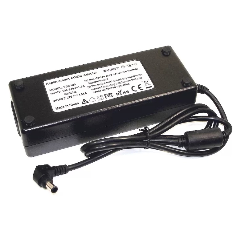 Блок питания (зарядное устройство) для телевизора (монитора) 22V, 4.54A, 120W (6.5x4.4). Зарядное 22v-4.54a используется для питания мониторов или телевизоров от сети 220v. Длина провода составляет 1.5 метра